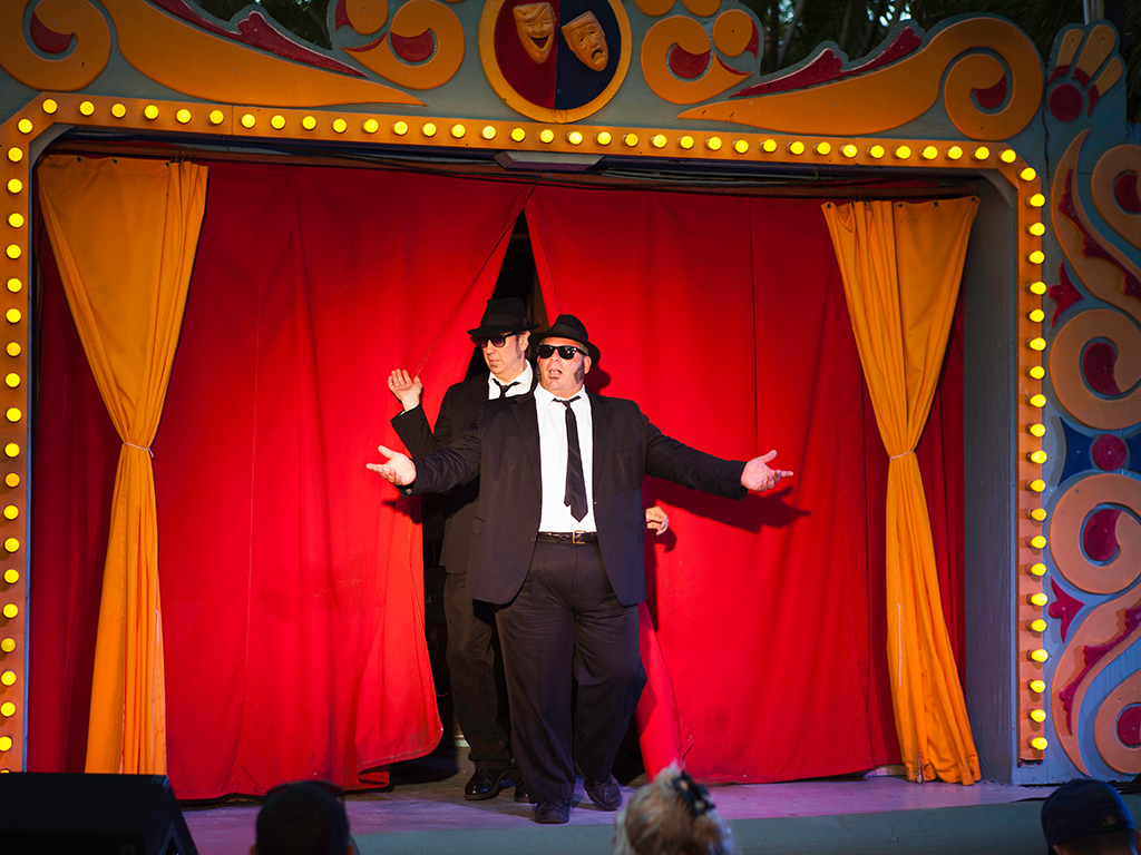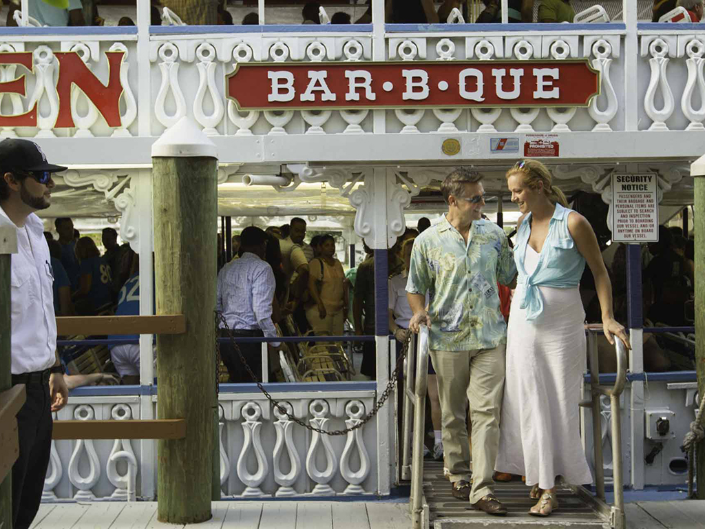The cruise takes you to our own tropical isle where you will feast on an all you can eat rib, chicken and shrimp dinner with all the fixin'. Then, you will be treated to a laugh out loud variety show. After the show you will board the ship for a beautiful and serene ride back down the New River to the Bahia Mar Yachting Center.
