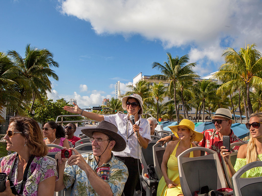 Soak up the Magic City vibe as you hop on a panoramic sightseeing tour of Miami. Create your own itinerary, explore at your own pace and fall under its spell as you visit the city´s most iconic locations such as South Beach, Coconut Grove, Little Havana and Ocean Drive. Soak up the Magic City vibe as you hop on a panoramic sightseeing tour of Miami. Create your own itinerary, explore at your own pace and fall under its spell as you visit the city´s most iconic locations such as South Beach, Coconut Grove, Little Havana and Ocean Drive. Highlights- Create your own itinerary and enjoy unlimited travel - See Miami´s most iconic attractions and locations - Discover the city at your own leisure The Big Bus sightseeing tour of Miami has been specifically designed to show you the best that Miami has to offer. You can enjoy it all from the comfort and great vantage point of an open-top bus, or hop off wherever you wish to explore the places that intrigue you most before hopping back on to continue your journey.