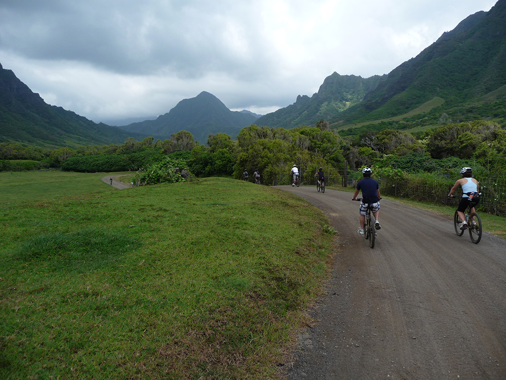 On the 100% DIRT Mountain Bike trail you will really leave the beaten path and explore the hidden gems of the island. The dramatic beauty of the lush Kaaawa Valley, the majestic Koolau Mountain cliffs and stunning ocean views are the backdrop to this epic tour that will take you past WWII bunkers, typical Hawaiian villages and famous movie locations. See where the likes of Jurassic Park, Lost, 50 First Dates and Godzilla were filmed as you race through the valley’s dirt tracks. A deli-style lunch and drinks are included both tours.