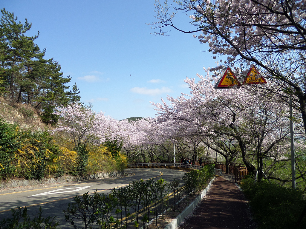 Dalmaji Hill is a bluff cliff, located just southeast of Haeundae Beach. Along Dalmaji-gil, near the entrance to the hill, a cafe town caters to lovers and young couples who come to enjoy a cup of coffee and the nice view of Haeundae Beach, the sea, and the moon. Special vista areas include P'algakjeong and Jeonmangdae. The area has also become famous for watching the moon rising on the lunar year's first full moon day. (The name comes from this ritual- dal means moon and maji means rising.)