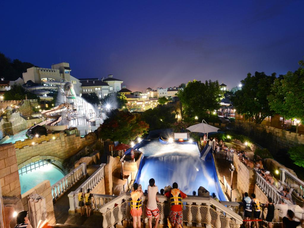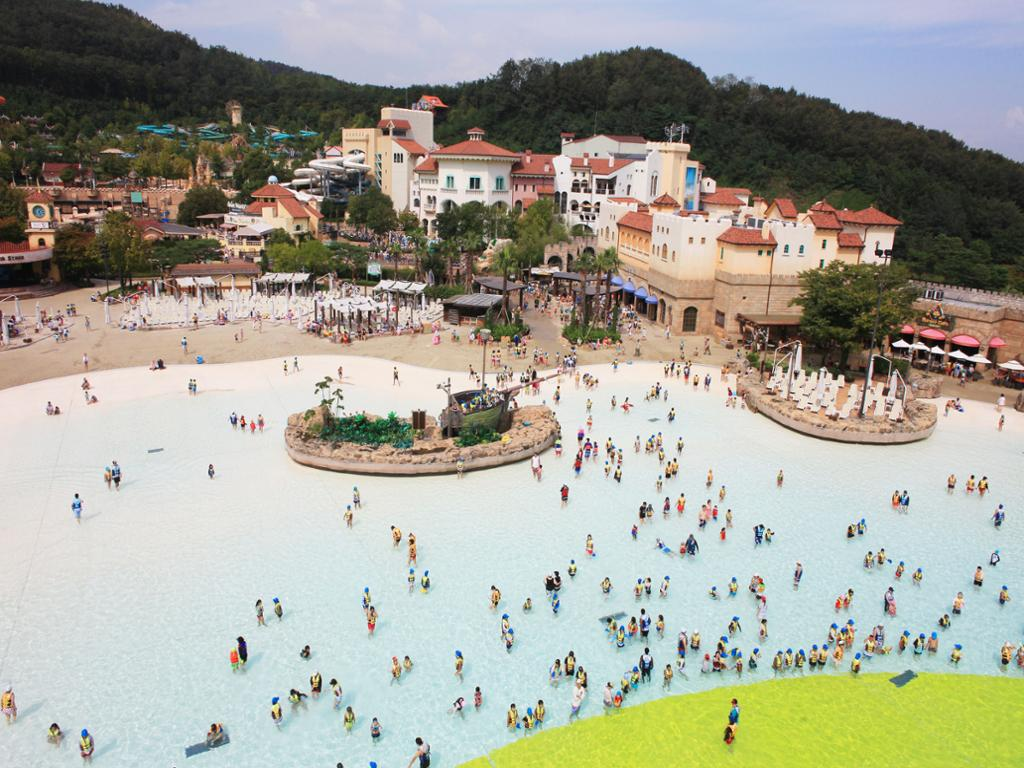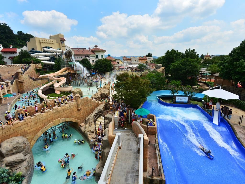 Caribbean Bay is part of Everland theme park. Here, not only can you enjoy swimming and water amusement rides, but you can also relax in hot spring waters all year round. The water park has various facilities, such as the indoor and outdoor pools, a spa, a sauna, a wave pool, and slides like the Water Bobsleigh.