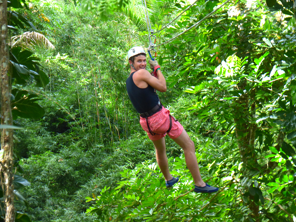 A quick river tube ride leads to the base of a hidden waterfall, where your zip line and rappelling adventure begin. Brace yourself for the famous inter-parish express, which takes you soaring over the Great River that divides the parishes of Hanover and St. James.