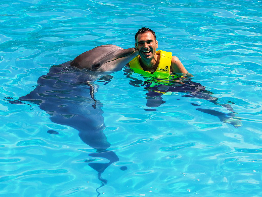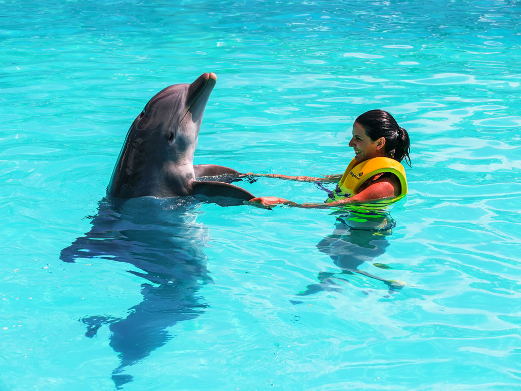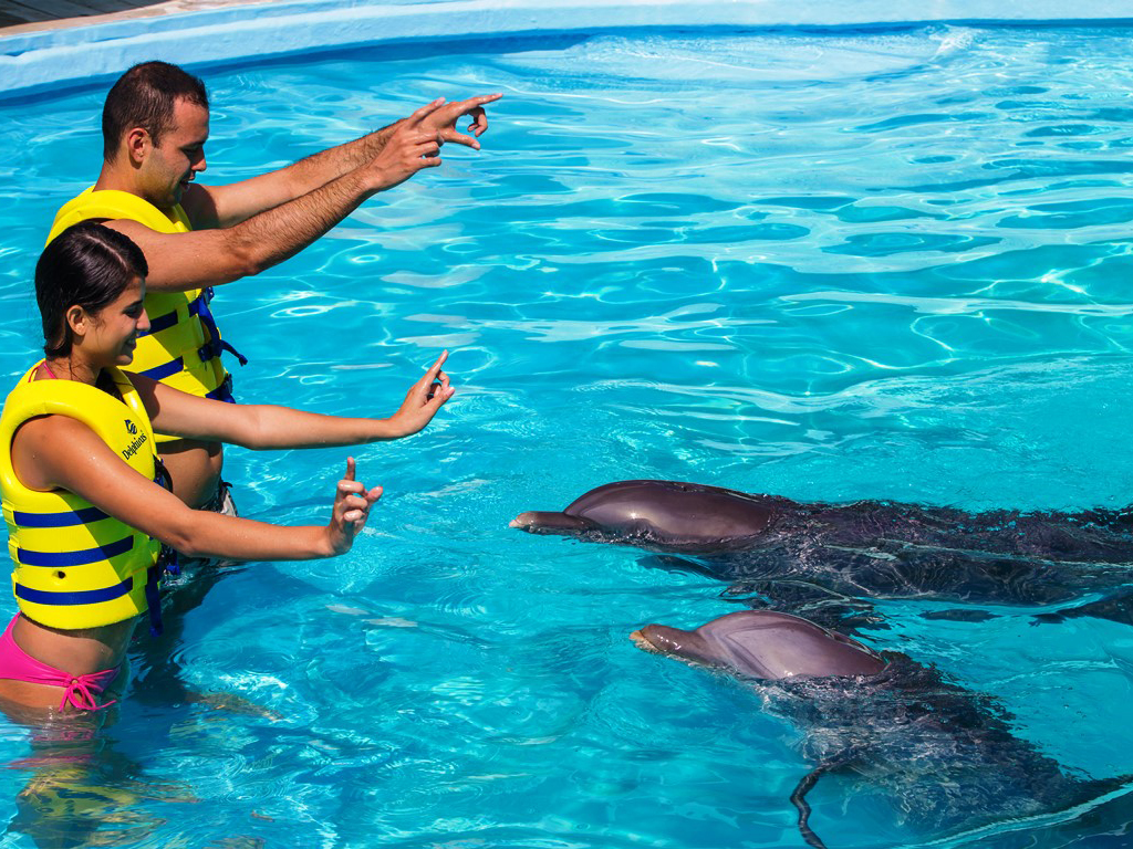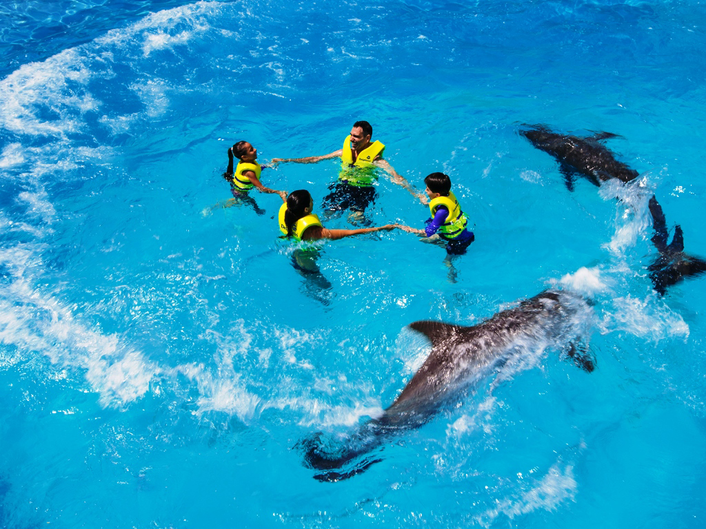 Is swimming with dolphins one of your dreams? Now you can turn your dreams into reality at the Interactive Aquarium, Cancun Is swimming with dolphins one of your dreams? Now you can turn your dreams into reality at the Interactive Aquarium, CancunHighlights- One of the best places to swim with dolphins - Enjoy lots of fun and memorable moments - 5 programs to choose from If you wish to explore the fascinating world of the charismatic dolphins and feel the affection of these adorable animals, all you have to do is choose from one of the programs below, specially designed for you to enjoy a unique experience. Dolphin Ride - 45 minutes (30 minutes in the water /15 minutes induction). Dolphin Ride is a program designed for you to have a great time with the dolphins in the water and on a platform. You can swim freely with the dolphins and observe their underwater world through visors. An important part of the program is receiving a big dolphin kiss! But the best part of this experience is having a ride around the pool on the back of a dolphin! Couple Swimming - Couple Swimming: 60 minutes (45 minutes in the water/15 minutes induction). Share a unique dolphin swim experience with a loved one thanks to this exclusive swim program for two. Spend an incredible hour of fun, interacting and swimming with dolphins with a special personalized session that will make your dreams come true. Splash - 45 minutes (30 minutes in the water/15 minutes induction). Share with your family and friends a unique and memorable interaction with the dolphins. Have fun with 14 different activities like kissing, hugging, touching and much more. 10 participants per group. Languages Spanish and English Redeem informationVoucher type: PrintedPrinted Voucher. Print and bring the voucher to enjoy the activity. LocationStart point: Blvd. Kukulcán Km 12.5 Plaza la Isla - 77500 - Quintana Roo - MXGuide optionsGuide type: GuideRequirementsPregnant women and people having some serious medical condition not allowed to join the activity. Minimum height: 100cm. Do not wear jewellery You are not allowed to wear sun cream when you swim with the dolphins. Children must be accompanied by an adult. RecommendationsPlease bring swimwear, comfortable clothes and a change of clothes.