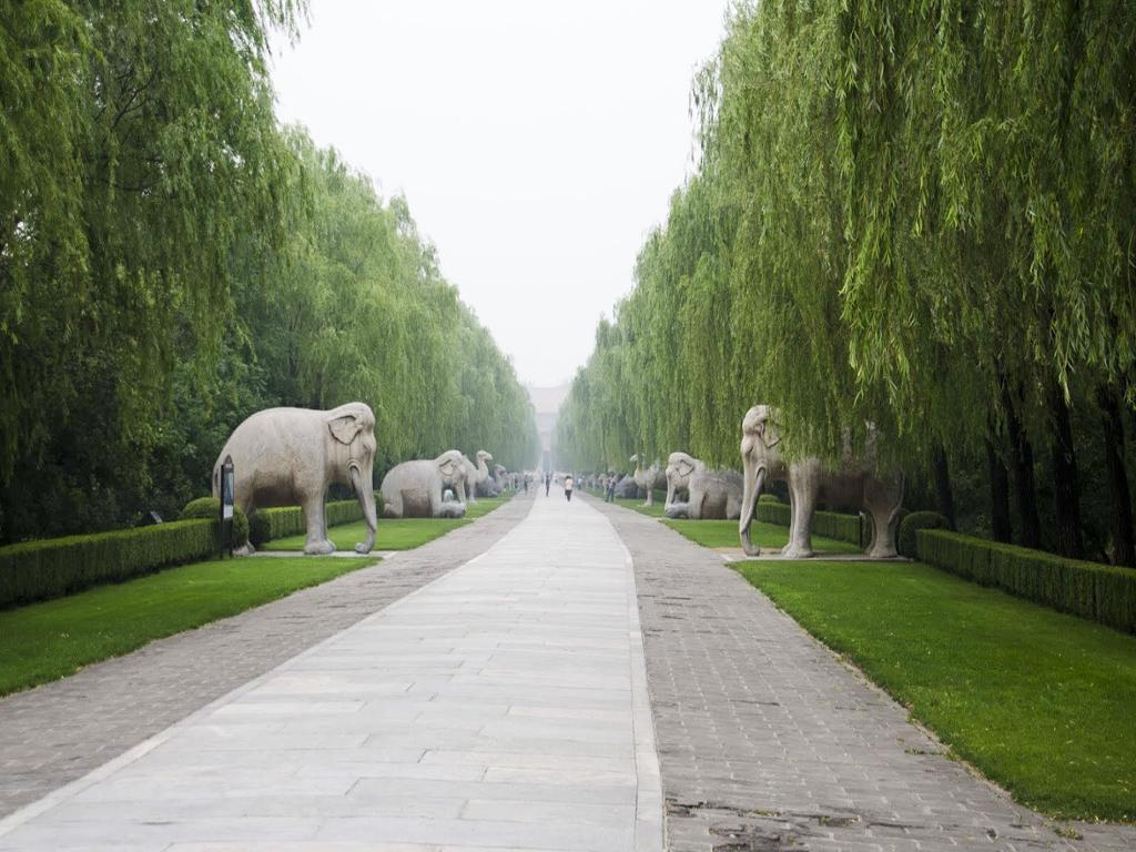 After the lunch, we will go to Sacred Way. In the front part of the imperial necropolises, there usually is a Sacred Way (or Divine Road) which means the road leading to heaven. The Emperor, known as the Son of the Heaven, who came from Heaven to his country through the Sacred Way, also deservedly would return to Heaven through this road. The Sacred Way is often lined with stone statues which are important decorations of the mausoleum. These statues are usually 12 human figures (including the general, civil officials and meritorious officials) and 24 animals which are lion, camel, elephant, xiezhi (a mythological unicorn), qilin (one of the four "divine animals, the other three are dragon, phoenix and tortoise), and horse. There are 4 of each of these animals: two standing and two squatting with different meanings. Lion symbolizes awesome solemnity because of their ferocity. Camel and elephant are meant to suggest the vastness of the territory controlled by the court, because they are dependable transport in desert and tropics. Xiezhi was put there to keep evil spirits away, because it was believed to possess the sixth sense to tell right and wrong. If two men fight, a xiezhi would gore the wicked one. Qilin, an auspicious symbol, was placed on two sides. Horse, as the emperor's mount, is absolutely indispensable. It is said that these animals is supposed to change guard at midnight.