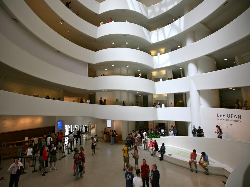 The Solomon R. Guggenheim Foundation was founded in 1937, and its first New York–based venue for the display of art, the Museum of Non-Objective Painting, opened in 1939. With its exhibitions of Solomon Guggenheim’s somewhat eccentric art collection, the unusual gallery—designed by William Muschenheim at the behest of Hilla Rebay, the foundation’s curator and the museum’s director—provided many visitors with their first encounter with great works by Vasily Kandinsky, as well as works by his followers, including Rudolf Bauer, Alice Mason, Otto Nebel, and Rolph Scarlett. The need for a permanent building to house Guggenheim’s art collection became evident in the early 1940s, and in 1943 renowned architect Frank Lloyd Wright gained the commission to design a museum in New York City. The Solomon R. Guggenheim Museum opened on October 21, 1959.