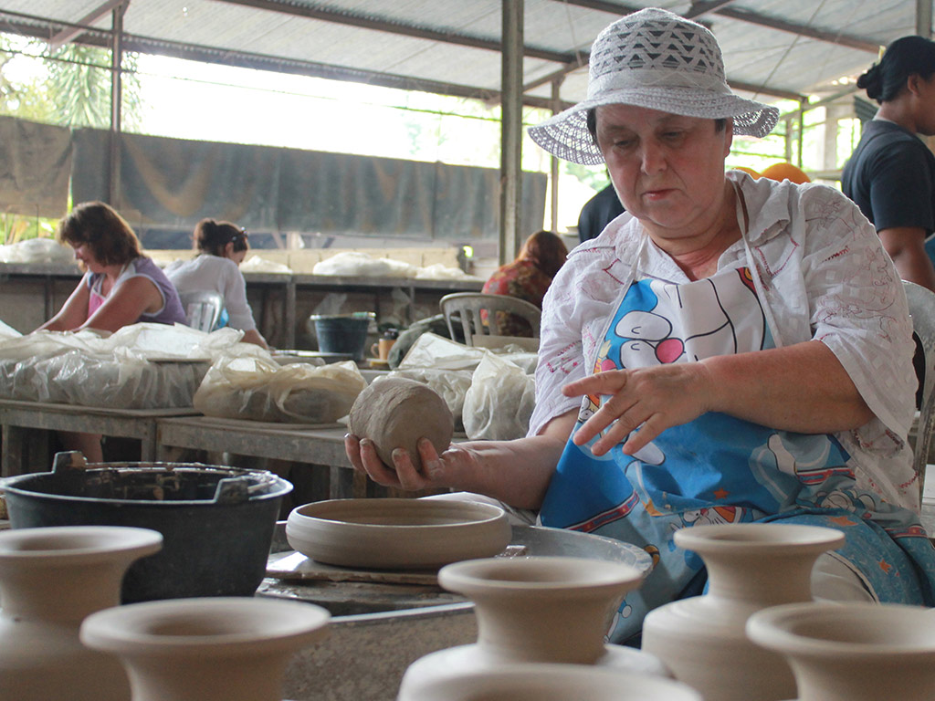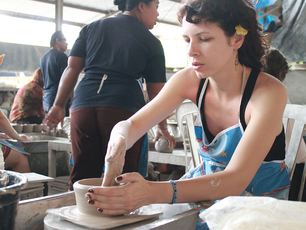 In the afternoon, meet with our professional tour guide that will accompany you for this half day culture experience. Heading to Pejaten village which was famous as the central of roof-tile producers long time ago. Here you will join our 1 hour short course, learn different techniques of making ceramic, start with learning methods of wedging, centering, lifting and forming, in addition to practicing the best positions for a mass of clay on the wheel. You will work on the potter's wheel and learn the basic of creating your own pieces. Our experience instructor will accompany you during the course.