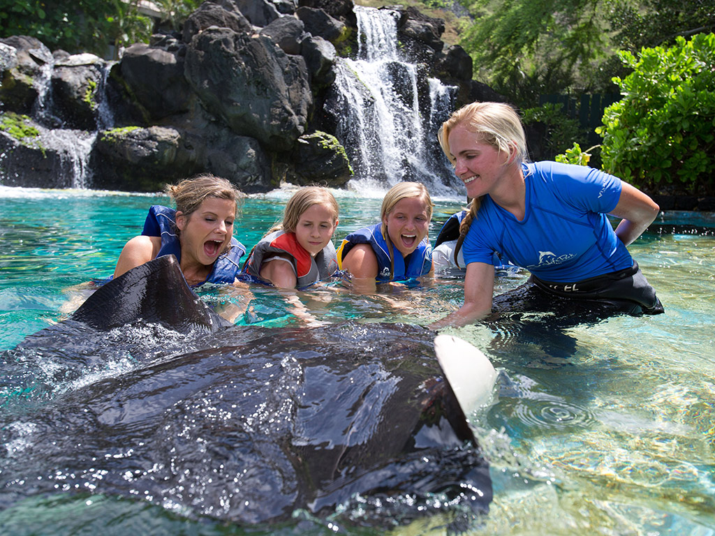 Using flotation vests, a snorkel, and a mask, participants can observe and interact with adorable Hawaiian Rays. Guests have the opportunity to swim with, feed, and touch the rays. These graceful marine animals are gentle and friendly.