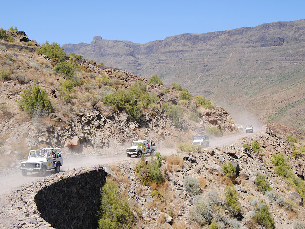 Discover hidden beauty spots and feel the rush of adrenaline as you speed down dusty tracks and discover fragrant forests and rocky ravines. Come with us and experience a unique and unforgettable 4x4 adventure. Discover hidden beauty spots and feel the rush of adrenaline as you speed down dusty tracks and discover fragrant forests and rocky ravines. Come with us and experience a unique and unforgettable 4x4 adventure.Highlights- Discover the hidden beauty of Gran Canaria - Drive through lush valleys and over other-worldy landscapes - Enjoy a tasty and traditional Canarian lunch Head for the coast, across gulleys and mountains, speeding though lush valleys where you’ll find plantations of bananas, pineapples and sugarcane. There are many different ways to see the Island and one of the best ways to discover some of its many off the beaten track attractions is by 4x4. Dare to discover the unknown in this route packed with adventure.