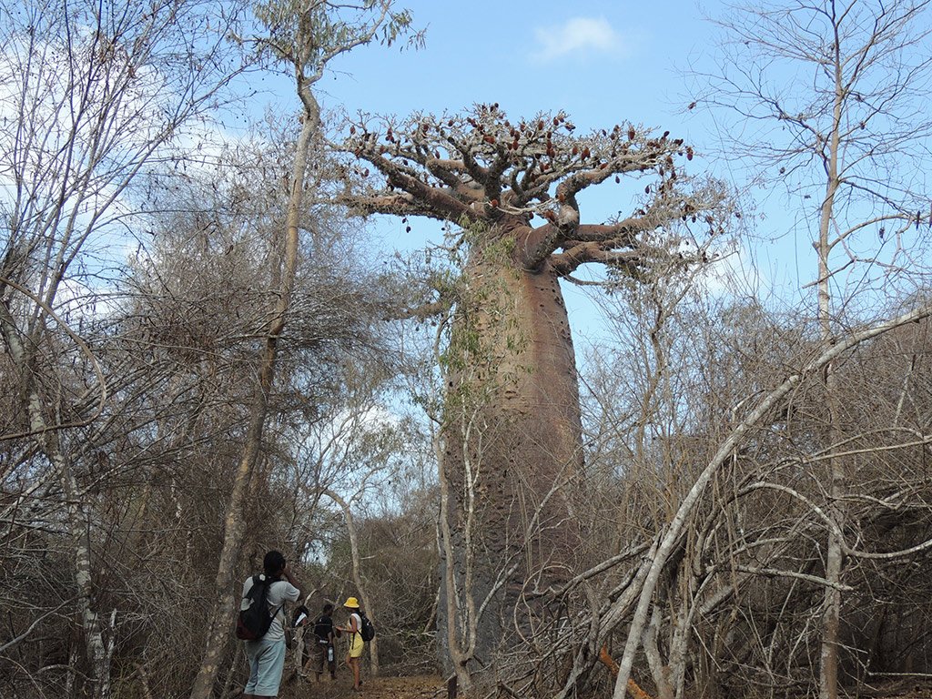 Endemic reptiles are present too in this magnificent forest like 40 bird, 50 reptile and 15 amphibian species and many bats. The flora is equally unusual, a number of unique species are found at Kirindy.On the way back we can visit the alley of baobab and lover’s baobabs. The baobab amoureux: Lovers Baobab. Here two magnificent baobabs (Adansonia za) have twisted together, two such a giant twisted.
