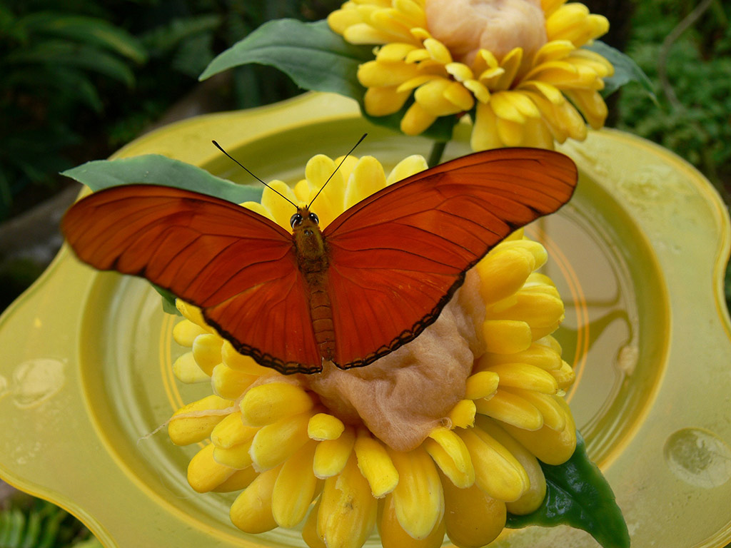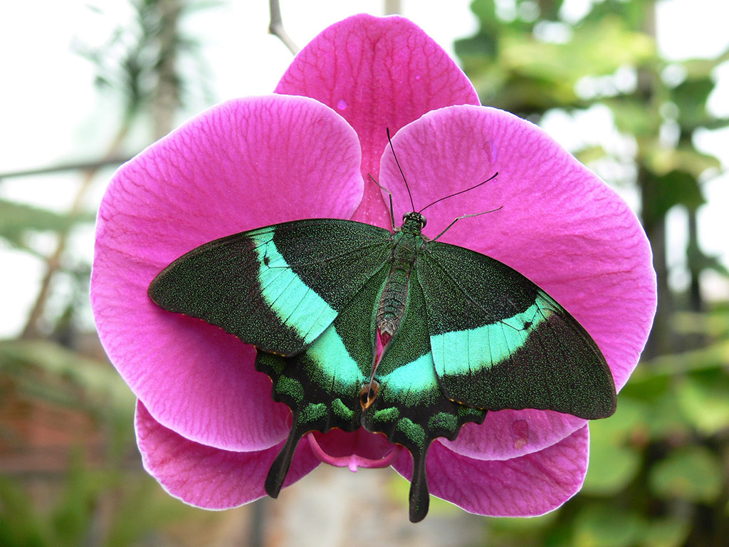 You will learn how a butterfly is born and find out what species is responsible for the biggest butterflies. Each species needs a specific plant to lay its eggs in, and this is what caterpillars feed on. This is known as the host plant. This close relationship between butterfly and plant is the result of millions of years of evolution. Females must find and recognise their host plants among the great botanical diversity of the tropical forests. The survival of their offspring depends upon this and to make them feel at ‘home’, we have brought in plants from their natural habitats in faraway jungles in Bali, Costa Rica, Thailand.