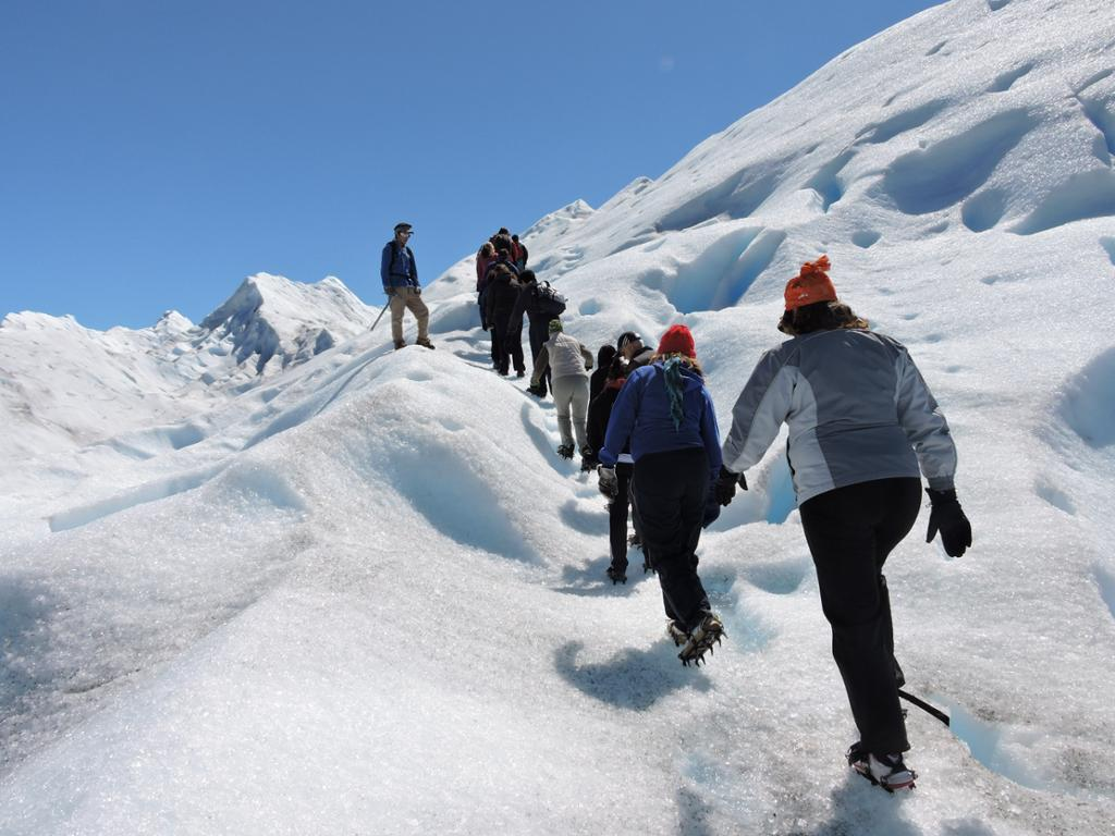 The trip begins with the trip from El Calafate to the Bajo de las Sombras port (about an hour and a half), where you embark to cross the Rico Lake. Groups of up to 20 people are formed, who make a 20-minute walk to the glacier and, once with the crampons, the ascent begins.