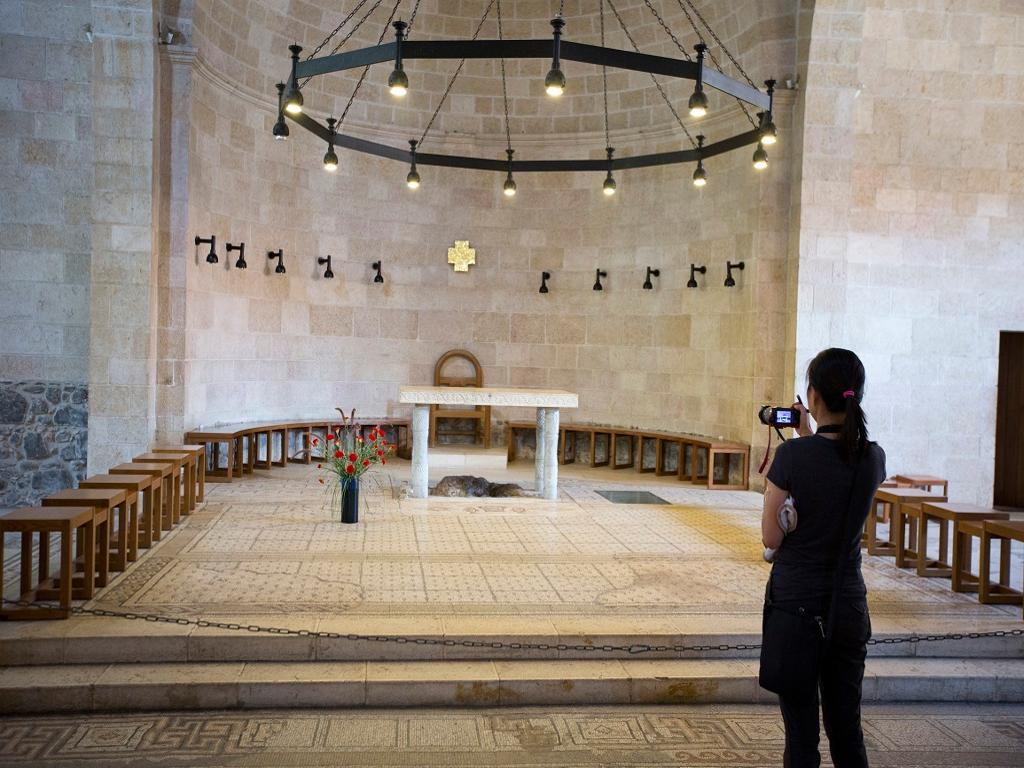 We depart Nazareth and travel to the Sea of Galilee on the way we pass Cana where Jesus turned water into wine. (John 2:1-12). At the foot of the Mount of Beatitudes we visit Capernaum on the shore of the Sea of Galilee. Here we see the home of Peter and the Church of the Multiplication. (Mark 6:30-44)