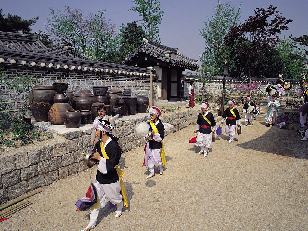We will then continue to the traditional village of Namsan Hanok where you'll see five restored Korean houses, a pavilion, a pond and a time capsule among others. Take a leisurely stroll around the area and see antique items and furniture. Next, we will go to Tongin market. Tongin Market dates back to June 1941. Now, Tongin Market consists of 75 stores, most of which are restaurants and grocery stores. There are also some shops selling manufactured goods like underwear and shoes.