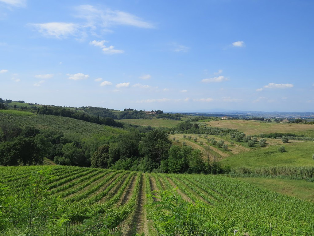 From Monteriggioni, crossing the gently Chianti rolling hills, a short ride will take you to a cozy Winery, where you can relax and enjoy the fantastic world of Chianti with its wine and typical products: tasting of three fine wines and balsamic vinegar followed by a Chianti style lunch: 3 course with “zero food miles” products which ends with "cantucci e vin santo".