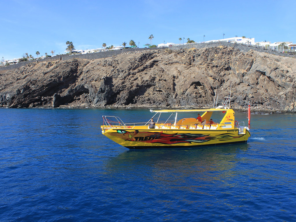 Jet boat capacity 48 passengers Redeem informationVoucher type: PrintedPrinted Voucher. Print and bring the voucher to enjoy the activity.LocationStart point: Pick-up from hotels in Costa Teguise, Arrecife, Puerto del Carmen, Puerto Calero and Playa Blanca. Please reconfirm the exact pick up point and time with the supplier at least 24 hours prior to confirmed tour date.End point: Same as the starting pointScheduleOpening datesOpening hours vary and are subject to change depending on the season.Duration: 4,5 HoursGuide optionsGuide type: GuideRecommendationsPlease wear sunscreen and comfortable walking shoes Outerwear