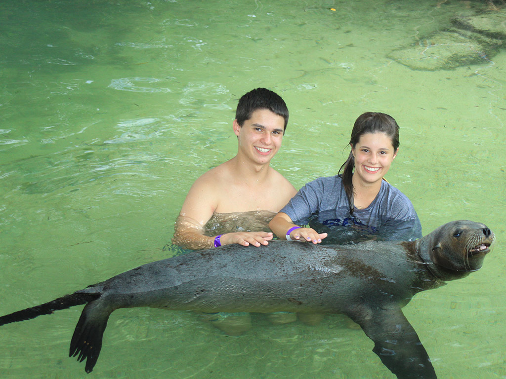 Swim - Get into the water, swim and do trained behaviors with these fun loving animals. Activity includes 20 minute orientation and 30 minute animal interaction time.